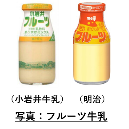 小岩井フルーツは、定番の「牛乳」「コーヒー」の新たなラインアップとして2012年に発売。牛乳販売店向けに販売され、温浴施設などに卸されていた。小岩井牛乳のフルーツ牛乳(左)は、まろやかな風味に、オレンジ、パインアップル、バナナの果汁が5%加わり、爽やかな後味が特徴だった。