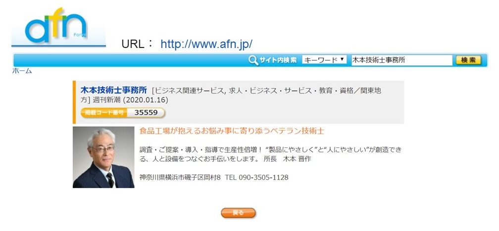 2020/01/16 『週刊新潮 1月23日号』情報BOX(P70)に紹介掲載されました。(2020.01.16) ポータルサイト『afn』に紹介掲載されました。(2020.01.16) URL:http://www.afn.jp/