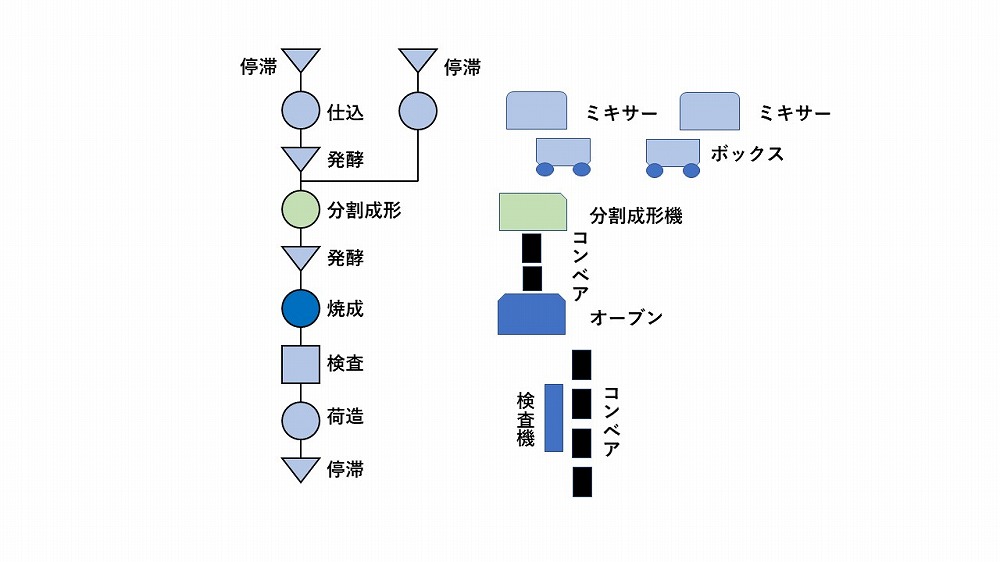 ② 物の停滞状況を調べ、それを無くすか、前後の取り扱いを解消できないか検討する。