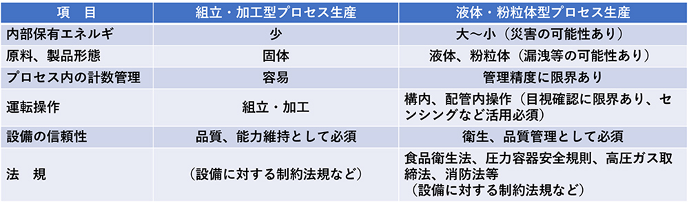 表2. 組立加工型プロセス生産と液体・粉粒体型製造プロセス生産の比較