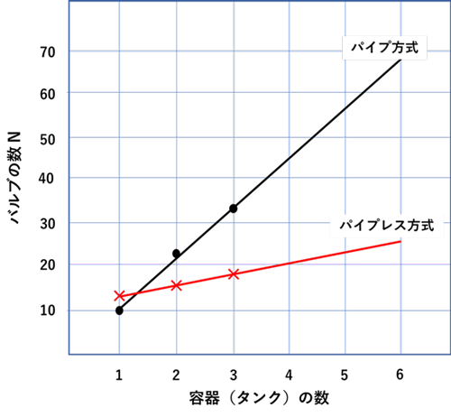 図7. パイプ方式とパイプレス方式のそれぞれのバルブの数の試算比較