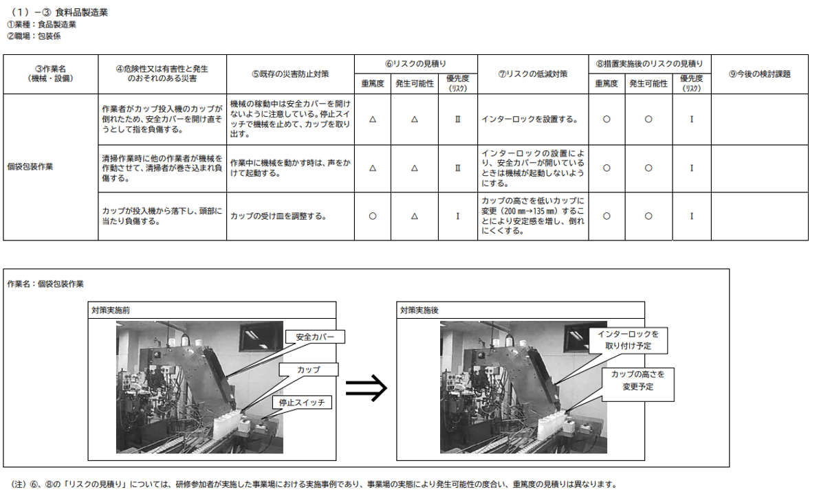 「リスクアセスメント実施事例集」株式会社インターリスク総研(厚生労働省委託事業)P 8 ~ P13